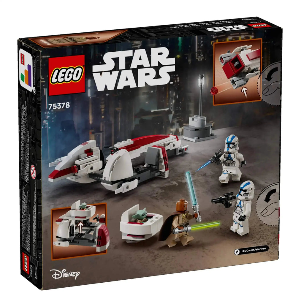 Embarque em uma missão de resgate na galáxia com o LEGO Star Wars Jedi & Clone Trooper Battle Pack! Este conjunto permite que você construa um speeder de ataque, perfeito para fugir das forças do mal. O kit inclui os icônicos bonecos de Mace Windu com seu sabre de luz roxo, Droide de Batalha e dois Clone Troopers para recriar cenas épicas ou inventar novas histórias no universo Star Wars.