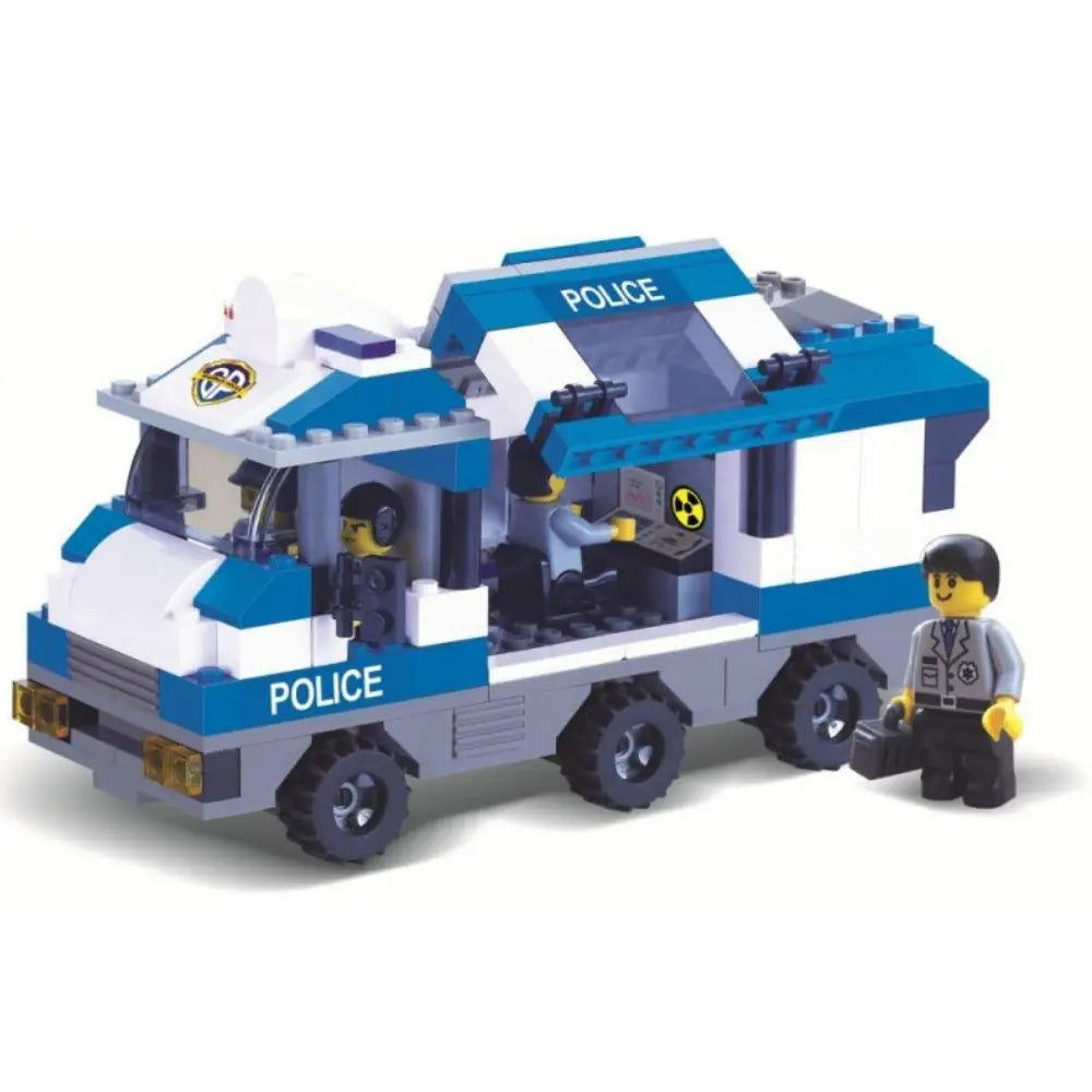 Detalhes: Inclui peças para montar um caminhão de polícia e 3 bonecos de agentes.