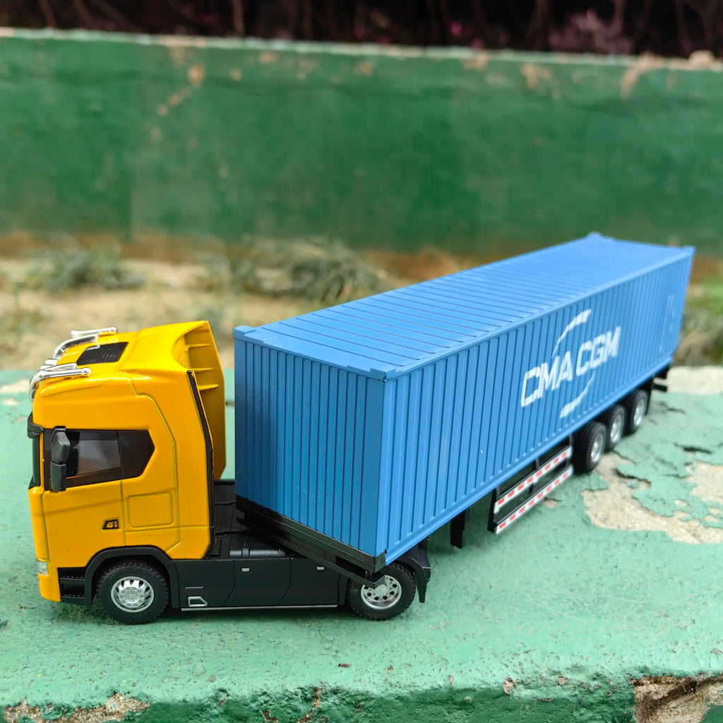 Domine as estradas e as éguas com o Caminhão Miniatura com Contêiner ! Esta peça é uma análise detalhada de um caminhão trator acoplado a um contêiner de transporte marítimo, reproduzindo a complexidade da logística global. Construída com materiais resistentes e um alto nível de detalhe, esta miniatura é perfeita para colecionadores de veículos de carga e para quem aprecia a potência e a robustez dos caminhões de longo curso.